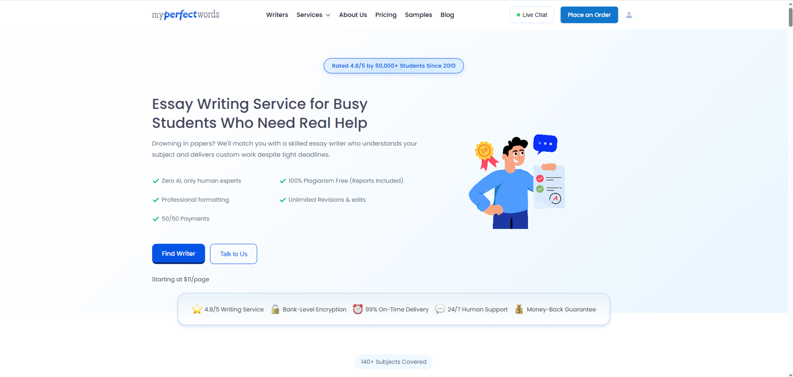 Why It Stands Out: MyPerfectPaper is perfect for routine assignments, offering affordable, reliable service with guaranteed quality.